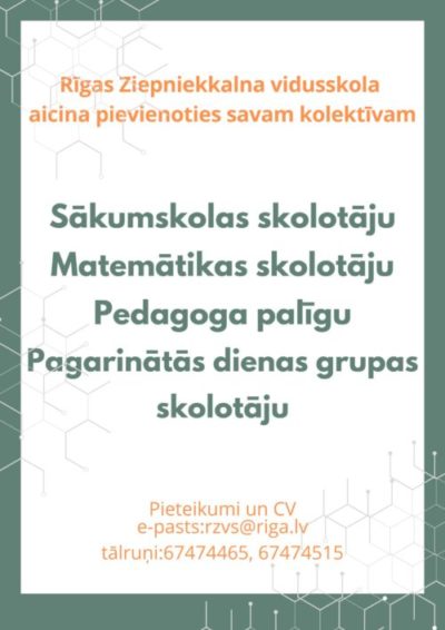 Izglītojamo uzņemšanas kārtība Rīgas Ziepniekkalna vidusskolas vispārējās vidējās izglītības programmā 2025./2026. mācību gadā. [Skatīt]